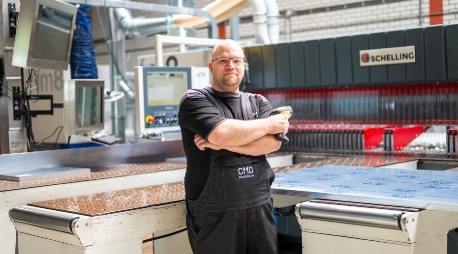 Erwin heeft zich bij CMD aluminium niet alleen technisch ontwikkeld, maar ook persoonlijk. “Ik ben hier echt rustiger geworden”. Door de structuur en duidelijke communicatie binnen het team voel je je snel op je gemak. Iedereen is open en eerlijk, en dat werkt aanstekelijk.” Hij vult aan: “Je hebt zeker een jaar nodig om te ontdekken hoeveel soorten aluminium er zijn en wat erbij komt kijken. Inmiddels werk ik volledig zelfstandig, maar we doen het hier echt samen.” CMD investeerde de afgelopen jaren flink in automatisering en nieuwe machines. “Toen ik begon stonden hier vier zagen, inmiddels zijn het er zes, waarvan één volledig geautomatiseerd. Dat ik bij deze ontwikkeling werd betrokken en mijn ideeën werden gewaardeerd, gaf me het vertrouwen dat ik hier echt op mijn plek zit. Als ik nu terugkijk, ben ik trots op wat we samen hebben neergezet.”